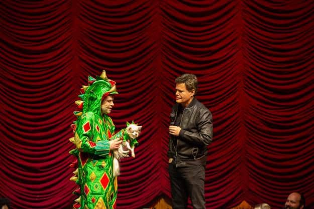 On Monday, November 14th, America’s favorite reptile, Piff the Magic Dragon, threw a birthday extravaganza for his ‘sidekick’ and rescue dog, Mr Piffles, who turned 15 years old, to raise money for the Nevada SPCA. The evening featured a special appearance by Donny Osmond who serenaded Mr Piffles with the song PUPPY LOVE during Piff’s show at the Flamingo Hotel & Casino in Las Vegas.